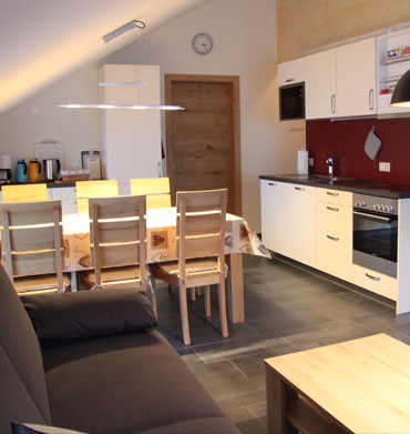 Die 2016 erbauten Hütten bieten Platz für 6 Personen. Beide Hütten bestehen aus 3 Doppelzimmern und einem gemütlichen Wohn- und Essbereich mit offener Küche sowie einem Badezimmer und einem separaten WC. Die Küche hat eine Grundausstattung mit allem, was zum Kochen und Essen benötigt wird. Im Keller befindet sich ein separater Raum für Ski und Skischuhe mit Schuhtrockner. Bettwäsche wird gestellt und ist im Preis inbegriffen; Handtücher müssen selbst mitgebracht werden.